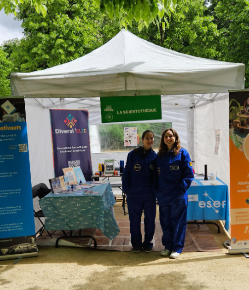 Elisabeth et Layla, responsables pédagogiques, aux couleurs de La Scientothèque sur un événement